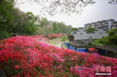 • 南京明城墙下杜鹃花迎来盛花期